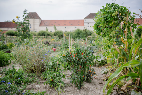Unser Ackerhelden-Gemüsegarten vor dem historischen Schloss Neugebäude.
