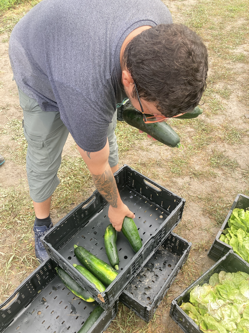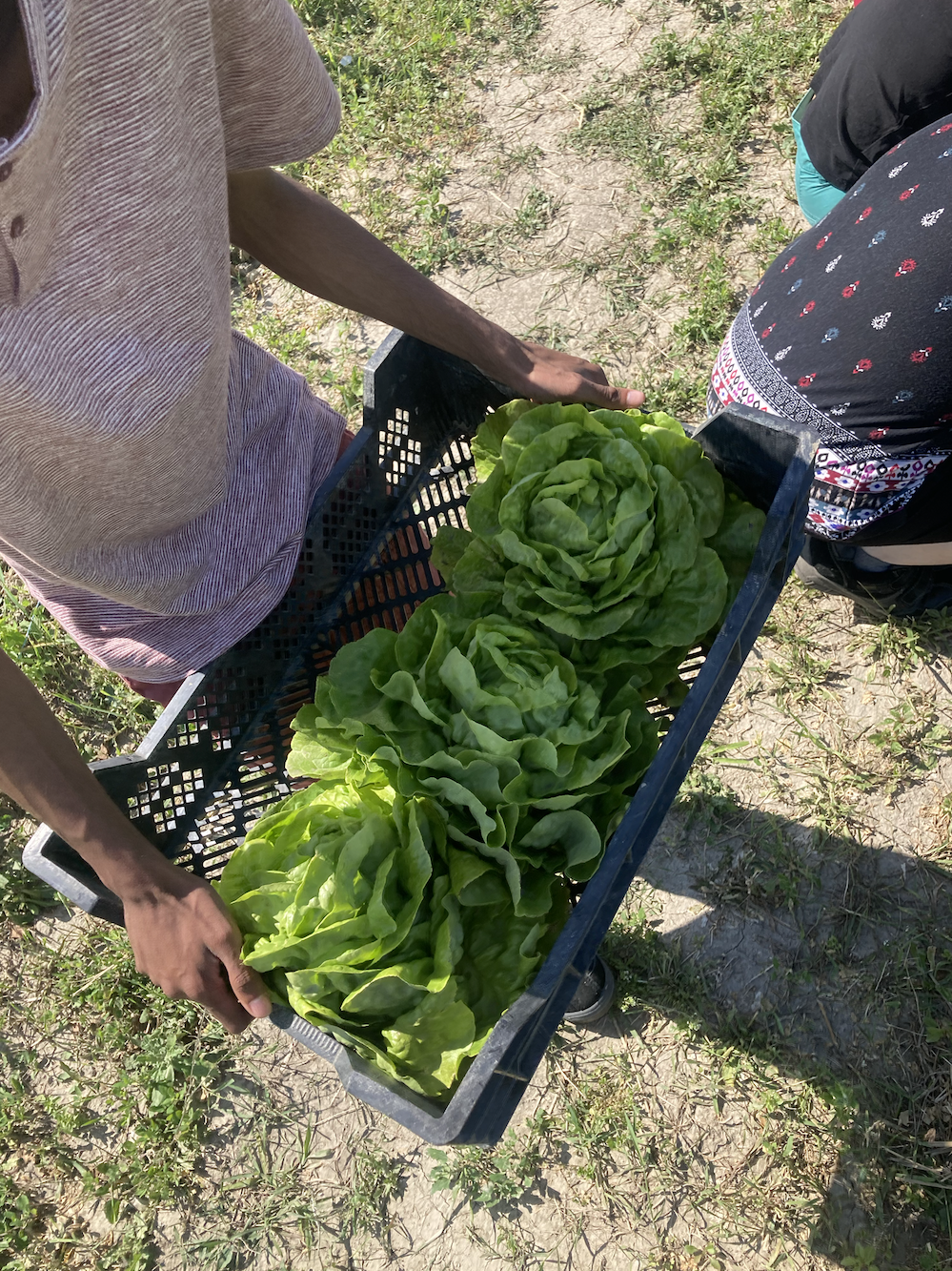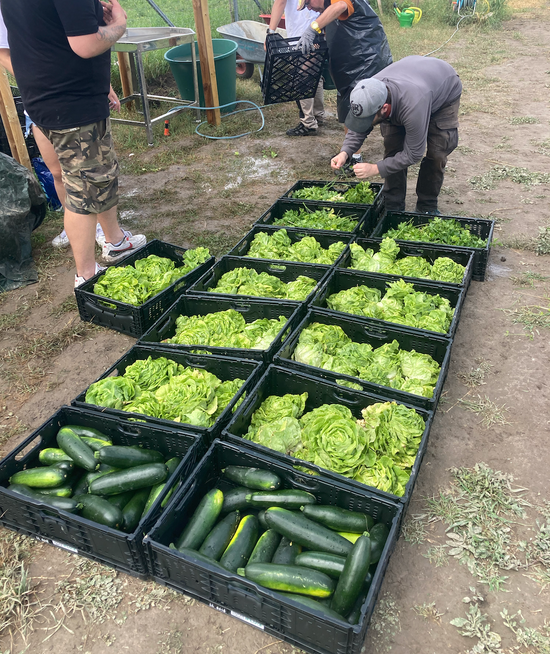 Das geerntet Bio-Gemüse wird vor Ort gereinigt und verpackt. Einmal pro Woche wird die Ernte vom ASBÖ abgeholt und an Sozialmärkte sowie Häuser der Wohnungslosen- & Flüchtlingshilfe verteilt.