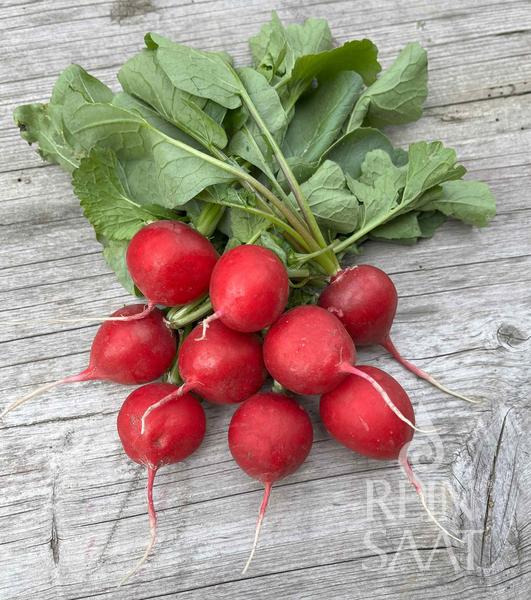 Radies „Rudi“ ist eine frühreifende, robuste und ertragreiche Radies-Sorte mit gleichmäßiger Wurzelbildung. Die runde, leuchtend rote Knolle hat ein zartes, mild-pikantes Fruchtfleisch und eignet sich hervorragend für Rohkost, Salate oder als Snack aus dem Garten. Kompakt und pflegeleicht – ideal für Beete, Hochbeete oder Reihenanbau.